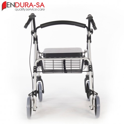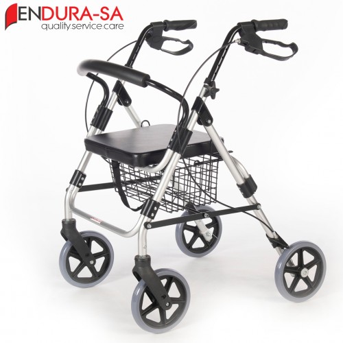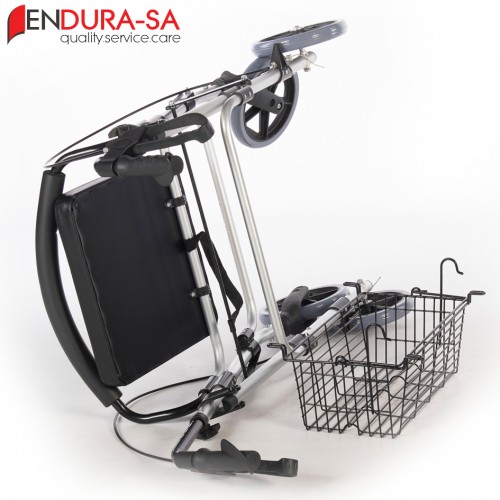 Convenient shopping rollator featuring a storage basket and comfortable seat. Reliable mobility equipment by ENDURA-SA South Africa.